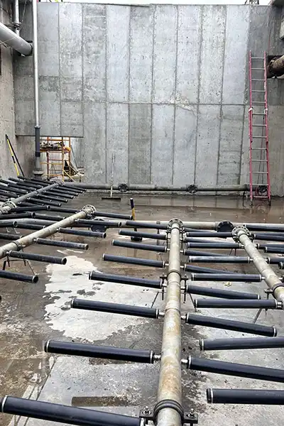 C&T Contracting rehabilitated the aeration system by installing three new blowers, installing a new electrical room, installed new SS air pipe, replaced existing baffle walls and upgraded aeration diffusers.